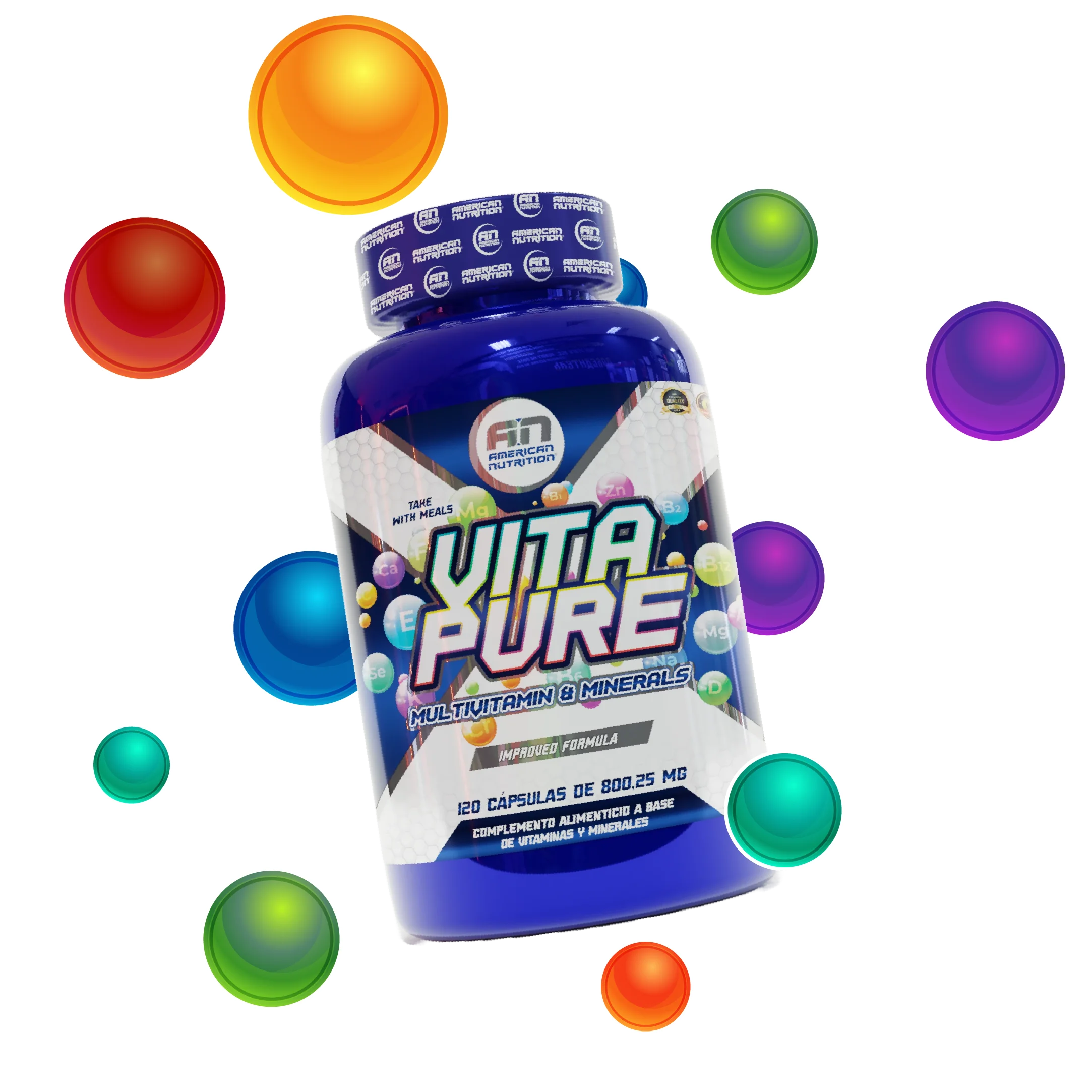 COMPLEMENTO ALIMENTICIO A BASE DE VITAMINAS Y MINERALES. Vita Pure ofrece una fórmula completa de vitaminas y minerales esenciales para apoyar el rendimiento diario y el bienestar general. Diseñado para llenar los huecos nutricionales en tu dieta, este multivitamínico incluye una gama completa de nutrientes para la salud óptima, incluyendo antioxidantes, vitaminas B para la energía, y vitaminas D y E para el soporte inmunológico y la salud ósea.